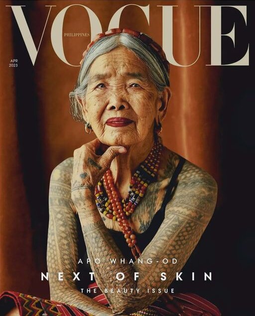 Apo Whang-Od, a 106-year-old tattoo artist from the Philippines, is now the oldest Vogue cover model. Whang-Od is considered her country’s oldest mambabatok — or traditional Kalinga tattooist. (Kalinga being one of the tribes in the middle of the big island, Luzon.) Her tattoos use an age-old hand-tapping technique, which she perfected as a teenager using just a bamboo stick, a thorn from a pomelo tree, water and coal. Her work is now internationally known, and she told Vogue Philippines she’s training her granddaughters in this stunning and meaningful art form.